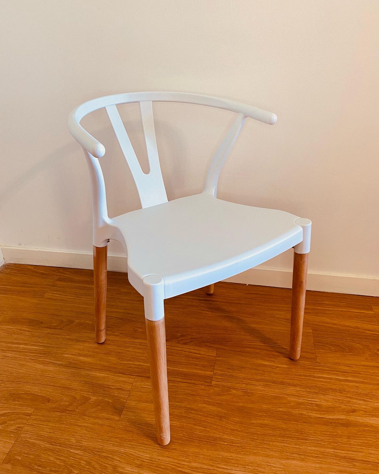✅ SILLA WISHBONE PLASTIC ✔️Color blanco ✔️Cuerpo de polipropileno ✔️Patas de madera haya con regatones plásticos ✔️Altura al asiento 45cm ✔️Profundidad del asiento 40cm ✔️Altura máxima del respaldo 74cm ✔️Ancho máximo 48cm ✔️Son apilables